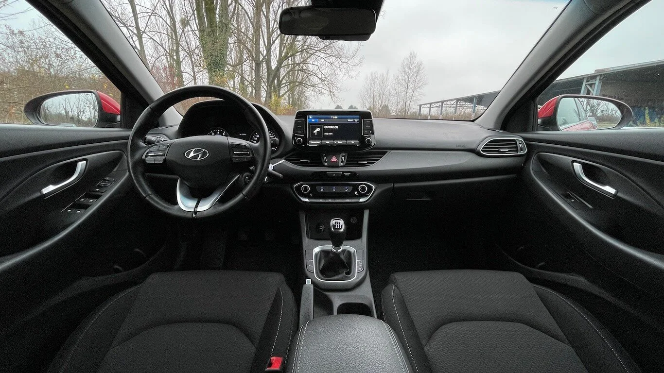 Opći dojam interijera sasvim je solidan. Vidi se da su u dizajnu glavnu riječ imali računovođe što se ne bi moglo reći i za percipiranu kvalitetu. Sjedala su presvučena tkaninom i ručno podesiva. Prosječne su udobnosti te pružaju, također prosječnu razinu bočne potpore. Volan je presvučen kožom i ugodan pod rukom, što je ustvari i najbitnije. Ručica mjenjača je po nama najslabija točka interijera jer nas neodoljivo podsjeća na one koje su krasile francuske automobile 70-ih i 80-ih. Hyundai i30 ima solidan interijer koji kvalitetom može parirati konkurenciji, ali dizajnom je još daleko iza.